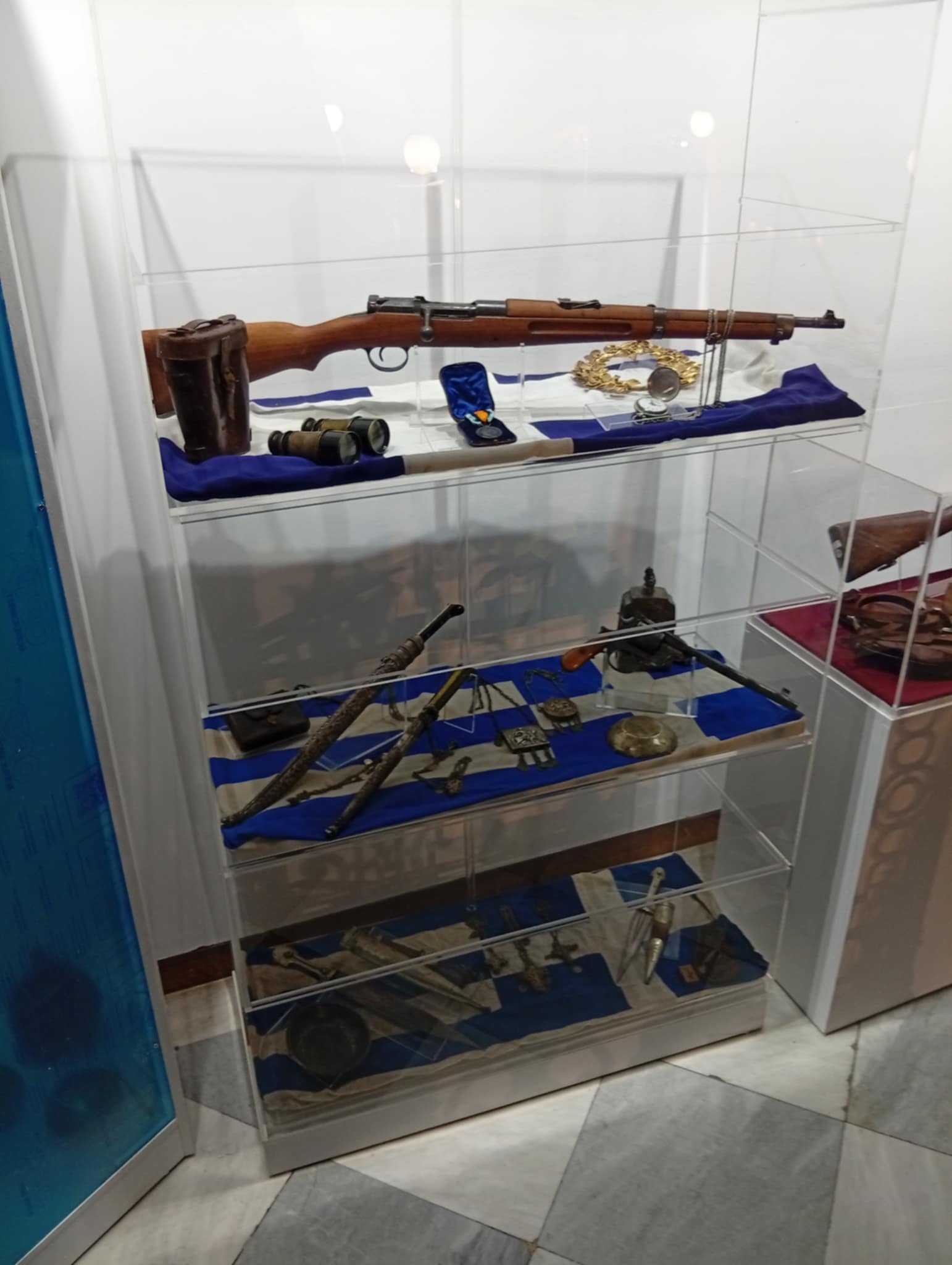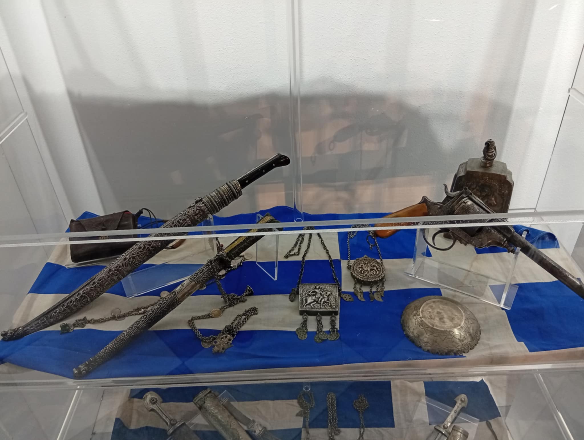 Ανάμεσα στα εκθέματα, ξεχωρίζουν ανεκτίμητα κειμήλια που φωτίζουν τον ηρωισμό και την αυτοθυσία των προγόνων μας: πολεμικές σημαίες, όπλα, προσωπικά αντικείμενα αγωνιστών και ιστορικά τεκμήρια, ανάμεσά τους και εκείνα του Μακεδονομάχου Αντωνίου Σουλιώτη, που καταγόταν από την Επισκοπή του Δήμου Αλεξάνδρειας Ημαθίας.