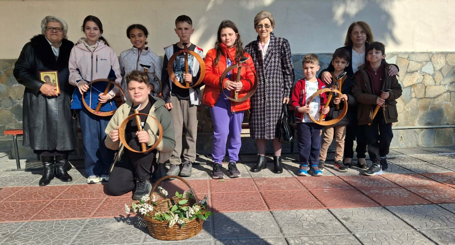 πήραν την ευχή του π. Σωτήριου και στην συνέχεια αναβίωσαν το Έθιμο της Χελιδόνας στο προαύλιο του Ιερού Ναού αλλά και στο χωριό της Καψόχωρας.