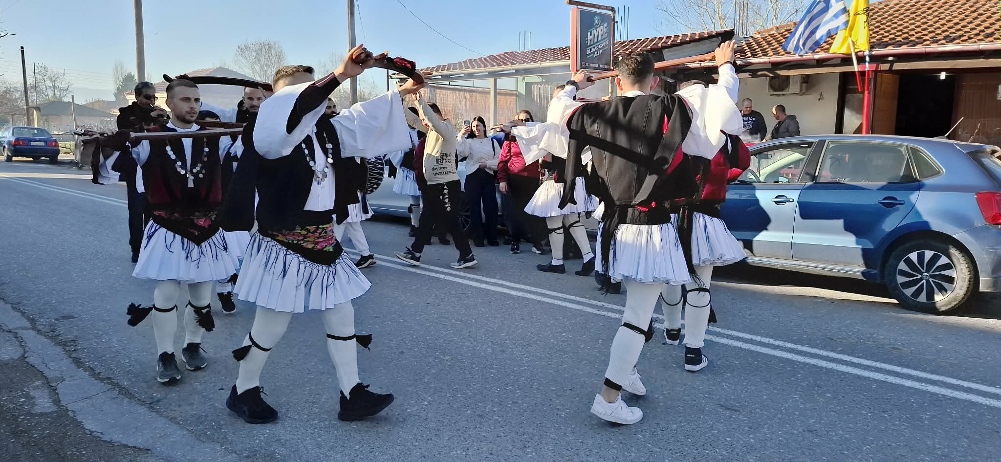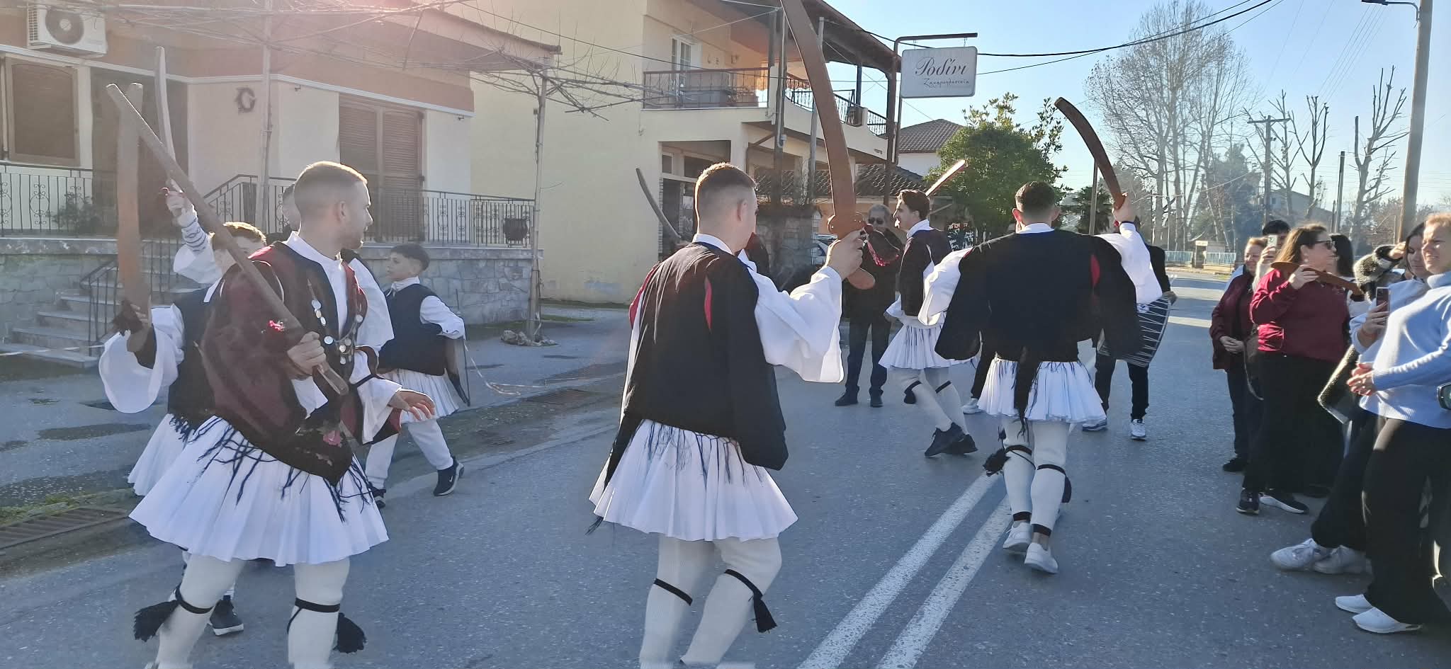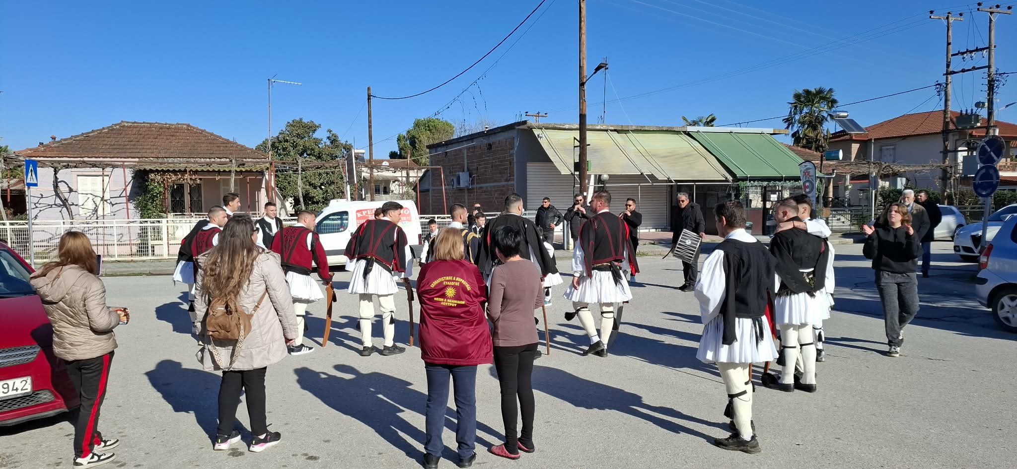 Οι νέοι του τόπου μας, με σεβασμό στην ιστορία και την παράδοση, ντυμένοι με τις παραδοσιακές φορεσιές τους και κρατώντας τα σπαθιά, ξεκίνησαν από την εκκλησία αφού πήραν πρώτα την ευλογία του πάτερ Ιωάννη, γύρισαν όλο το χωριό με τους γνώριμους ήχους του ζουρνά και του νταουλιού. Οι κάτοικοι άνοιξαν τα σπίτια και τις καρδιές τους, τους υποδέχθηκαν με κεράσματα, χαμόγελα και πολλές ευχές.