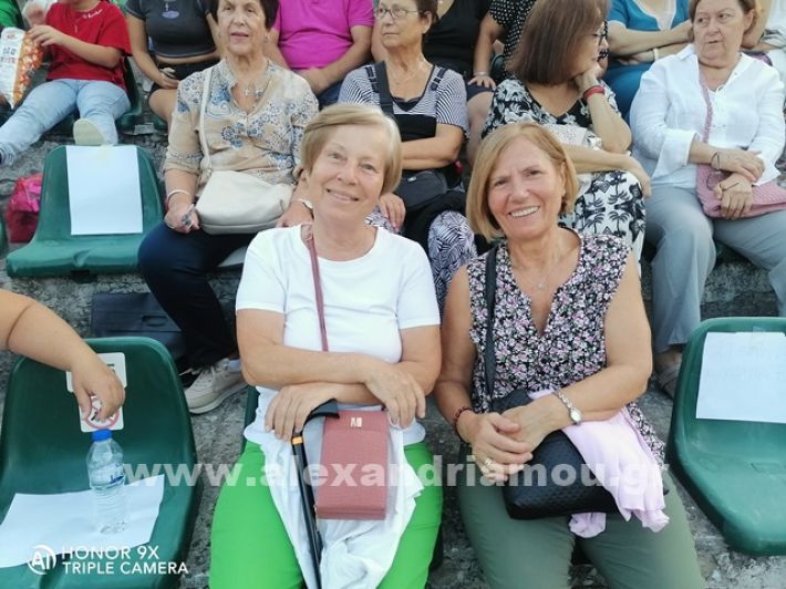 Μια μοναδική μουσικοχοροθεατρική παράσταση με διακριτικό τίτλο ¨Βουρβούρζι η ψείρα στου κιφάλ κι φτον του ξιούνταν του πουδάρ΄¨ παρουσιάστηκε τη Δευτέρα 2 Σεπτεμβρίου 2024 στις 8.00μ.μ. στο κατάμεστο Δημοτικό Αμφιθέατρο Αλεξάνδρειας. Μια χοροθεατρική παράσταση με πάρα πολύ κόσμο και με πολύ γέλιο, για την ακρίβεια γέλιο μέχρι δακρύων για μια ακόμη χρονιά, μέσα από το πρίσμα της σάτιρας, με οδηγό τον σεναριογράφο, σκηνοθέτη και εμπνευστή της χοροθεατρικής παράστασης κ. Δημήτρη Σαμαρά που έγραψε στη ντόπια γλωσσολαλιά εντυπωσιάζοντας όσους παραβρέθηκαν.