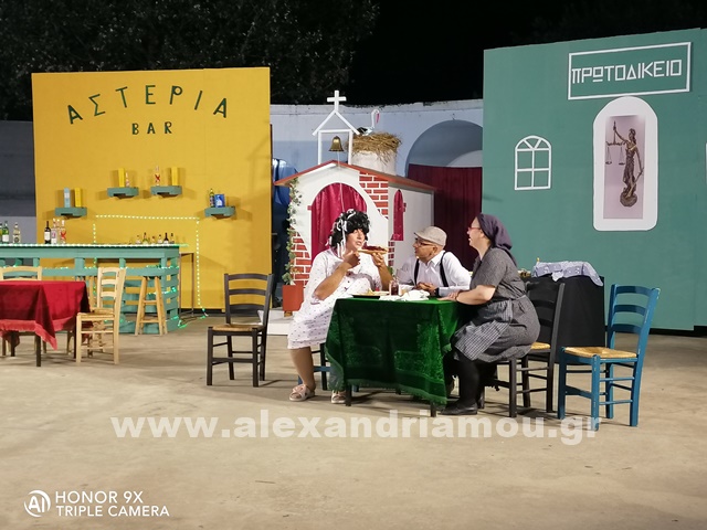 Δεν είναι τυχαίο πως κάθε χρόνο χιλιάδες θεατές γεμίζουν το δημοτικό αμφιθέατρο Αλεξάνδρειας για να απολαύσουν την ατμόσφαιρα της παράστασης, να θυμηθούν παλιά και να μοιραστούν νέες αναμνήσεις. Το γέλιο γίνεται γιορτή, η σάτιρα συναντά την παράδοση και η αυθεντικότητα αγγίζει τον καθένα μας.
