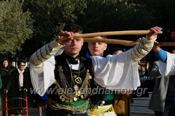 Συγκεκριμένα το πρωί του Σαββάτου 31 Δεκεμβρίου 2023 αφού πρώτα πήραν την ευλογία του Αρχιερατικού Επιτρόπου Αλεξανδρείας, Αρχιμανδρίτη Διονυσίου Ανθόπουλου στον Μητροπολιτικό Ιερό Ναό Κοιμήσεως της Θεοτόκου βγήκαν στους δρόμους της Αλεξάνδρειας με τη συνοδεία ζουρνάδων και νταουλιού χόρεψαν, σταύρωσαν με τα σπαθιά τους σπίτια , καταστήματα, οχήματα και ευχήθηκαν Χρόνια πολλά και Καλή Χρονιά σε όλο τον κόσμο.