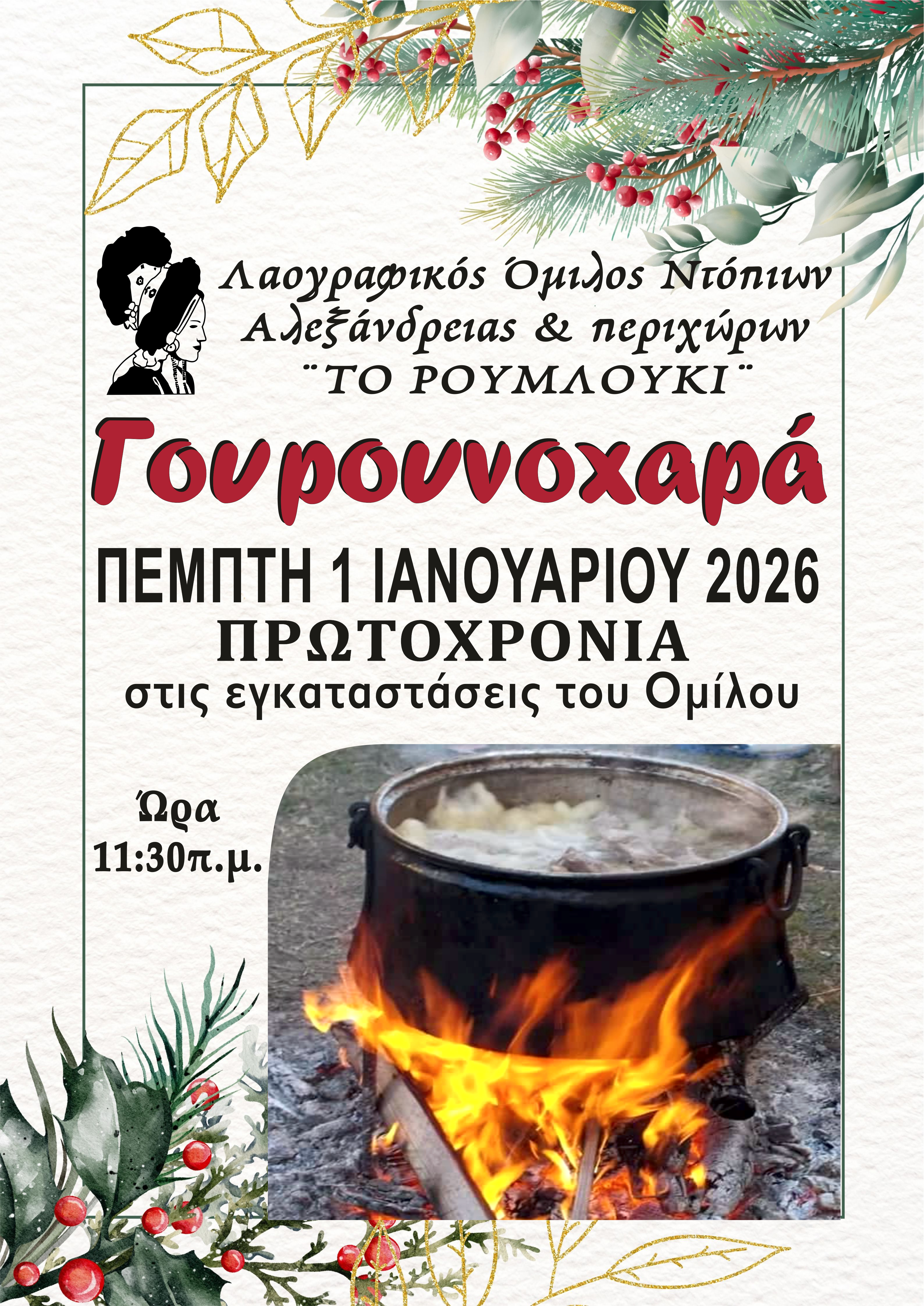 Η αναβίωση του εθίμου θα γίνει την Πέμπτη 1 Ιανουαρίου 2026 και ώρα 11:30 στις εγκαταστάσεις του Ομίλου.