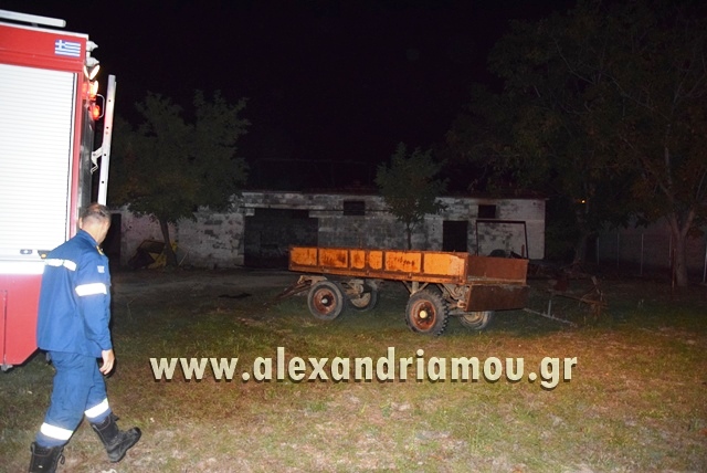 Φωτιά ξέσπασε σε γεωργική αποθήκη στην Κυψέλη Ημαθίας την Πέμπτη 19 Οκτωβρίου 2017 περίπου στις 9 μ.μ.