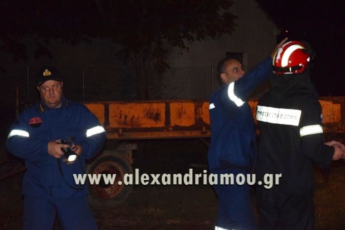 Στο συμβάν επί ποδός πυροσβεστικές δυνάμεις της Π.Υ. Αλεξάνδρειας και της Π.Υ. Κολινδρού που αποτελούνται από δύο πυροσβεστικά οχήματα και πέντε άνδρες με επικεφαλής τον νέο Δκτη της Π.Υ. Αλεξάνδρειας Γερόπουλο Γρηγόρη.