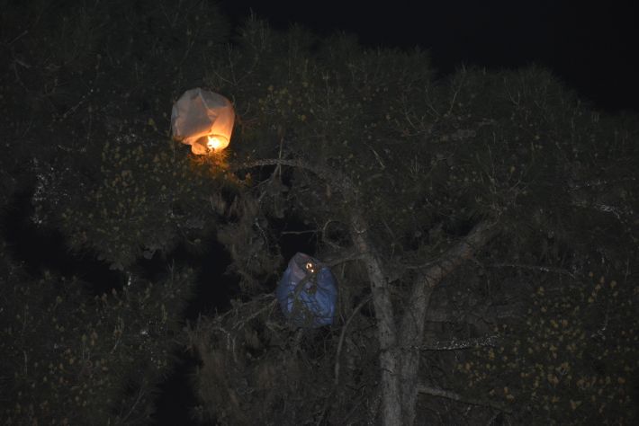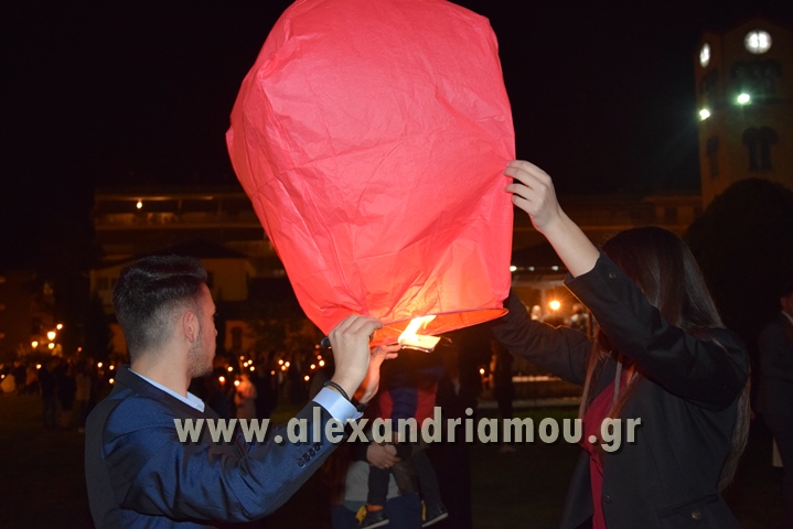 Με το πρώτο «Χριστός Ανέστη» δεκάδες πολύχρωμα αερόστατα - φαναράκια άναψαν και γέμισαν τον ουρανό. Το πέταγμα των αερόστατων συνοδεύονταν από πολλά πυροτεχνήματα που φώτισαν τον ουρανό και τις καρδιές των πιστών που αντάλλασαν το ΄΄Χριστός Ανέστη, Αληθώς ο Κύριος.΄΄