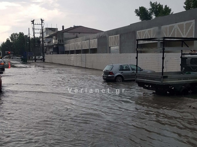 Το νερό από την χθεσινή δυνατή καλοκαιρινή μπόρα μετέτρεψε το οδόστρωμα σε ιδανικό ….κοπηλατοδρόμιο, αλλά σαφώς ακατάλληλο και επικίνδυνο για τα διερχόμενα οχήματα σύμφωνα με το verianet.gr.