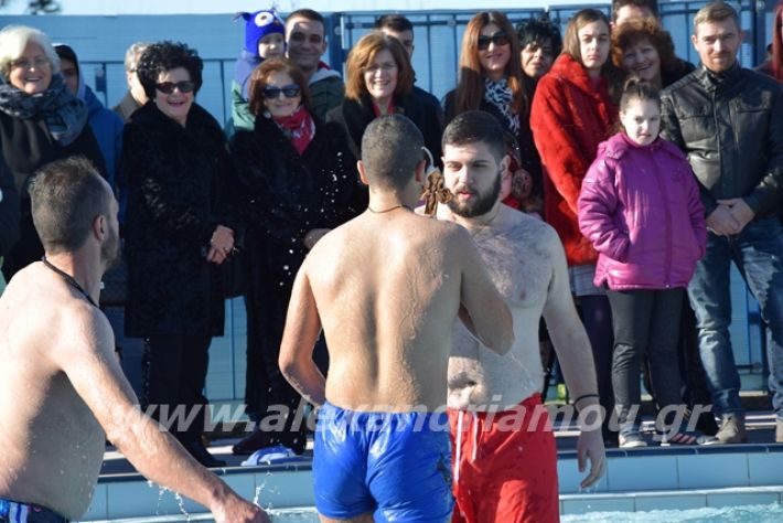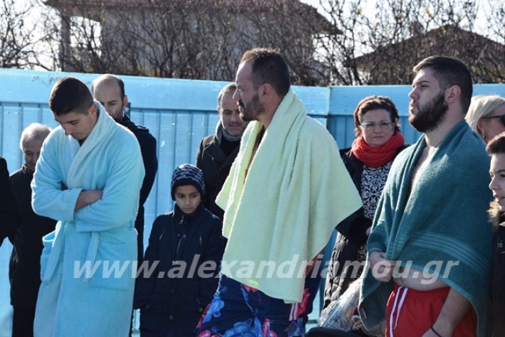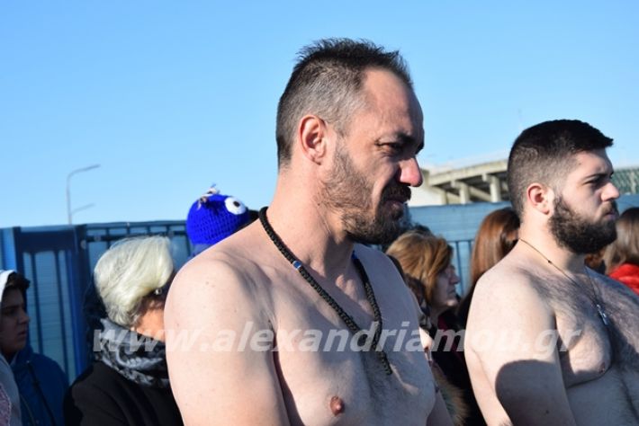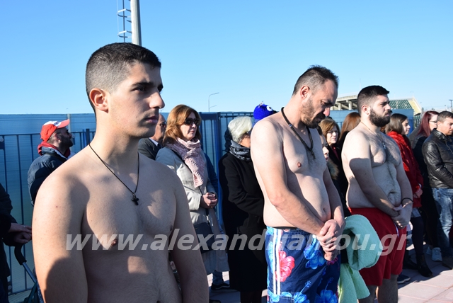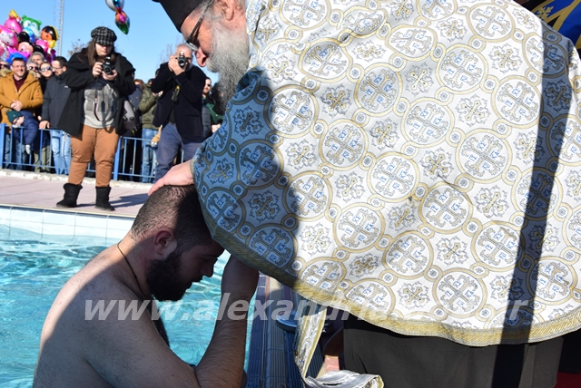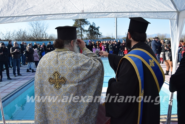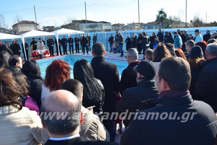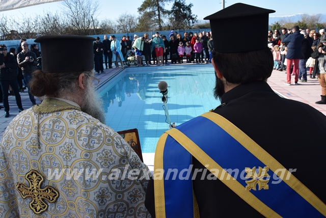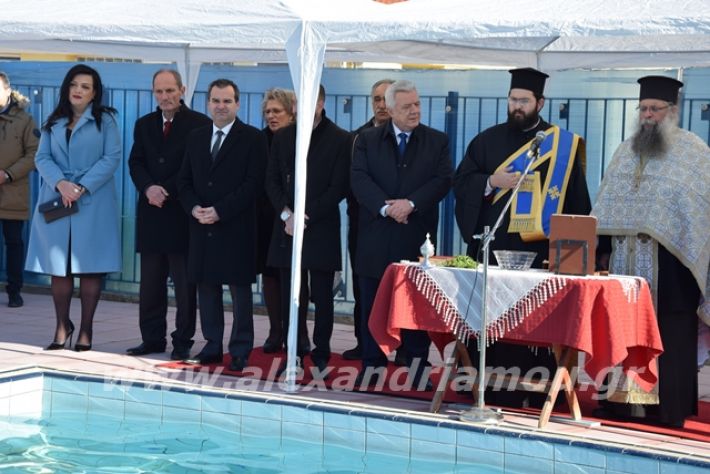 Στη συνέχεια ακολούθησε ο αγιασμόςτων υδάτων και η ρίψη του Τιμίου Σταυρού στο Δημοτικό Κολυμβητήριο Αλεξάνδρειας.