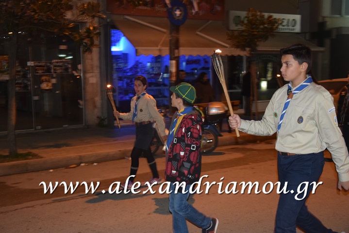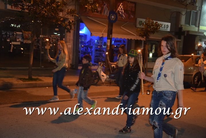 Στα πλαίσια του εορτασμού της 25ης Μαρτίου 1821, οι Πρόσκοποι της Αλεξάνδρειας πραγματοποίησαν σήμερα Πέμπτη 24 Μαρτίου το βράδυ, το έθιμο της λαμπαδηδρομίας τιμώντας τους ήρωες που έπεσαν για την πατρίδα.
