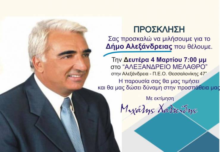 Από τον υπ. δήμαρχο Αλεξάνδρειας Μιχάλη Χαλκίδη ανακοινώθηκαν τα εξής: