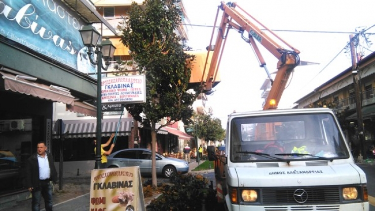 Συνεργεία του Δήμου Αλεξάνδρειας και συγκεκριμένα της Υπηρεσίας Πρασίνου από το πρωϊ της Παρασκευής 13 Νοεμβρίου 2015 κλαδεύουν τις μανόλιες στην οδό Βετσοπούλου