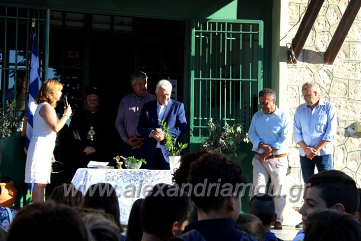 Ο Αγιασμός πραγματοποιήθηκε παρουσία του Δημάρχου Αλεξάνδρειας κ. Παναγιώτη Γκυρίνη, της Διευθύντριας Πρωτοβάθμιας Εκπαίδευσης Ημαθίας κ. Ευθυμίας Γώτη, του Αντιδημάρχου του Αυτοτελούς Τμήματος σε θέματα Παιδείας κ. Αθανάσιου Παντόπουλου, των Διευθυντών των σχολικών μονάδων κ. Μουσαφίρη Κυριακής, του κ. Σπυριδωνίδη Αντώνη και του κ. Αργιαντόπουλου Βασίλειου, των εκπαιδευτικών, των μαθητών και γονέων.