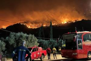 Ολονύχτια μάχη με τις φλόγες έδωσαν δυνάμεις της Πυροσβεστικής μαζί με εθελοντές στη Ρόδο, την Κέρκυρα, το Αίγιο, την Κάρυστο και την Υλίκη, ενώ με το πρώτο φώς τις ημέρας ξεκίνησαν να επιχειρούν και τα εναέρια μέσα.