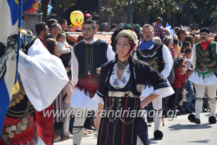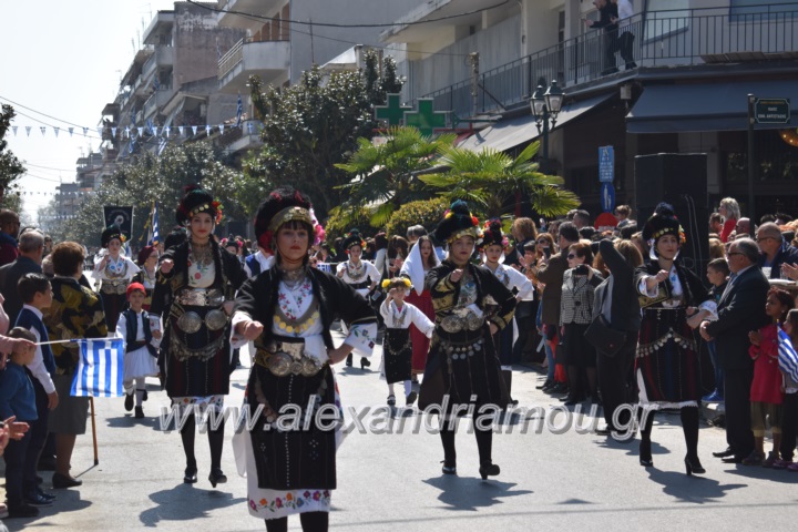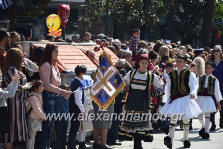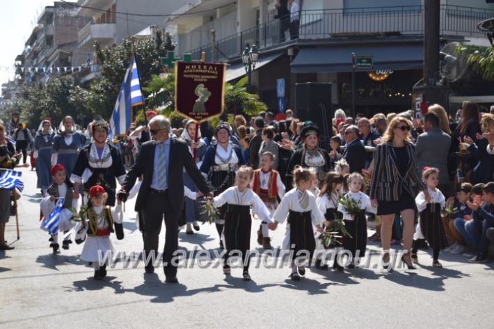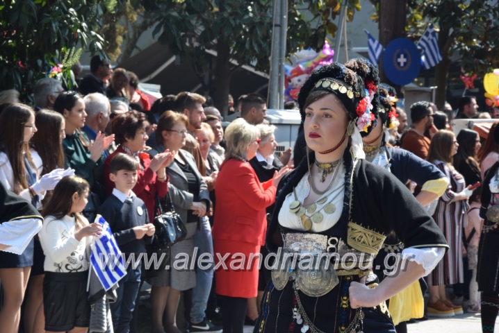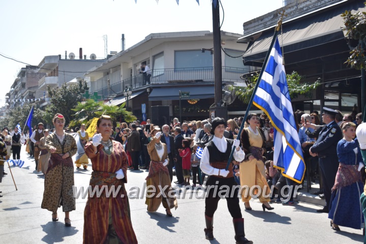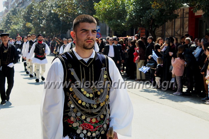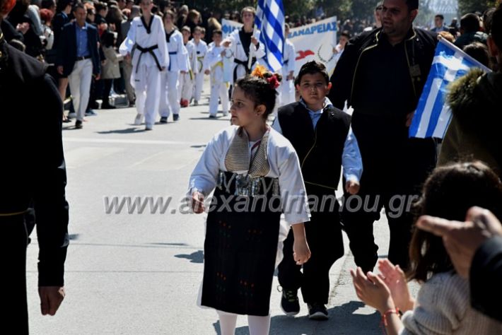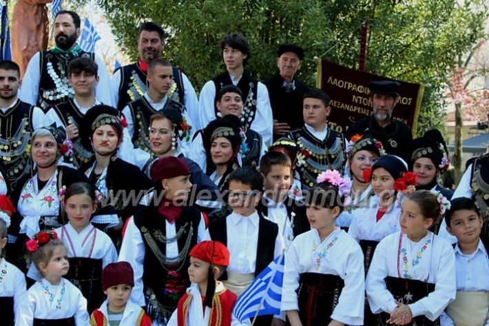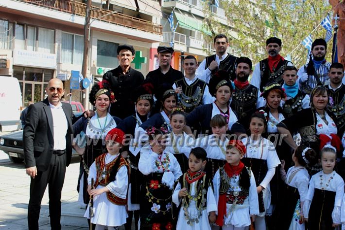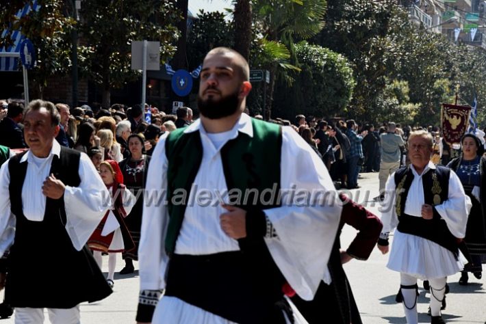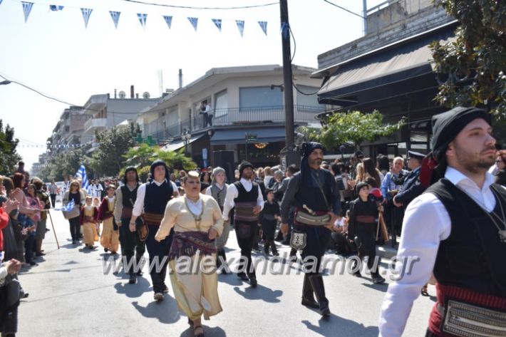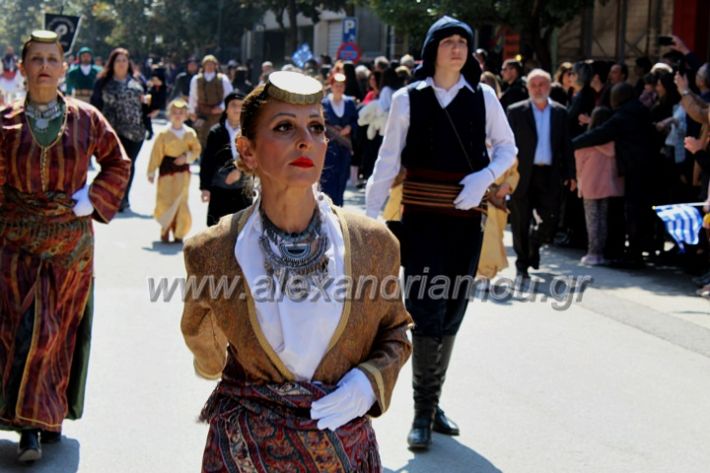 Με ιδιαίτερη επισημότητα και λαμπρότητα πραγματοποιήθηκε η καθιερωμένη παρέλαση της επετείου της 25ης Μαρτίου στην Αλεξάνδρεια στις 12π.μ. επί της οδού Βετσοπούλου με τη συμμετοχή μαθητών και μαθητριών των σχολείων, πολιτιστικών συλλόγων, με τις σημαίες τους, καθώς και τμήματος Στρατού.