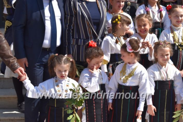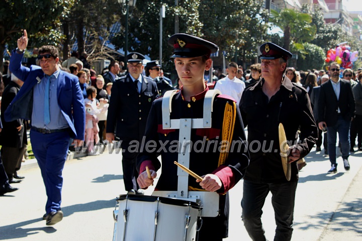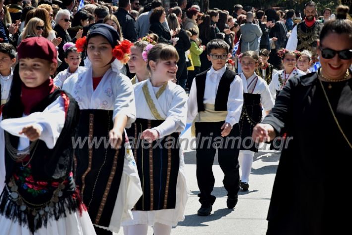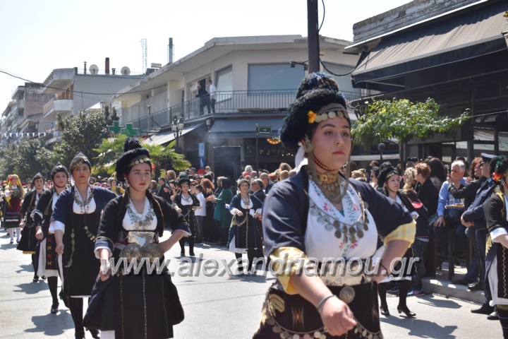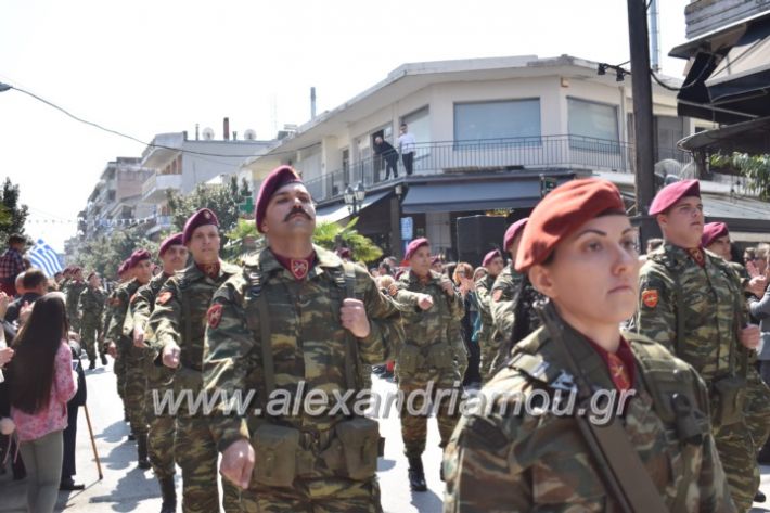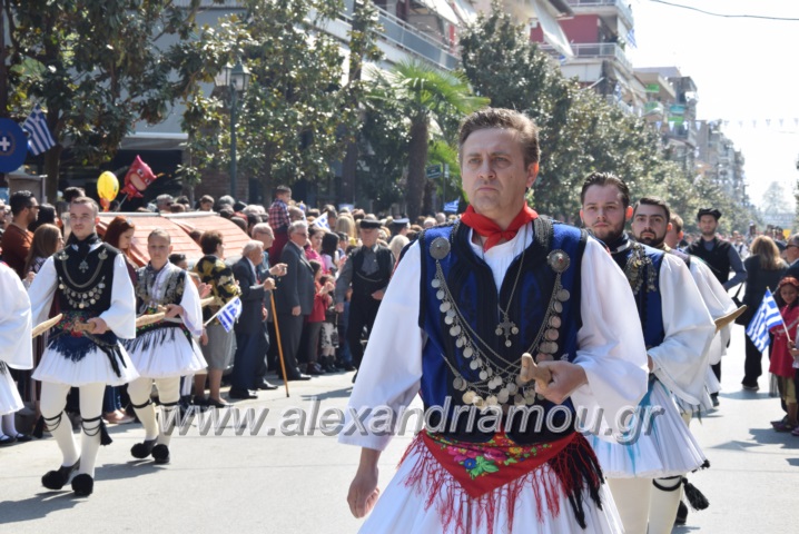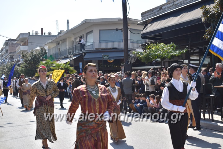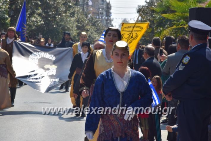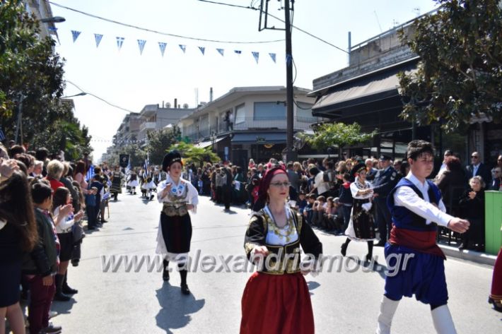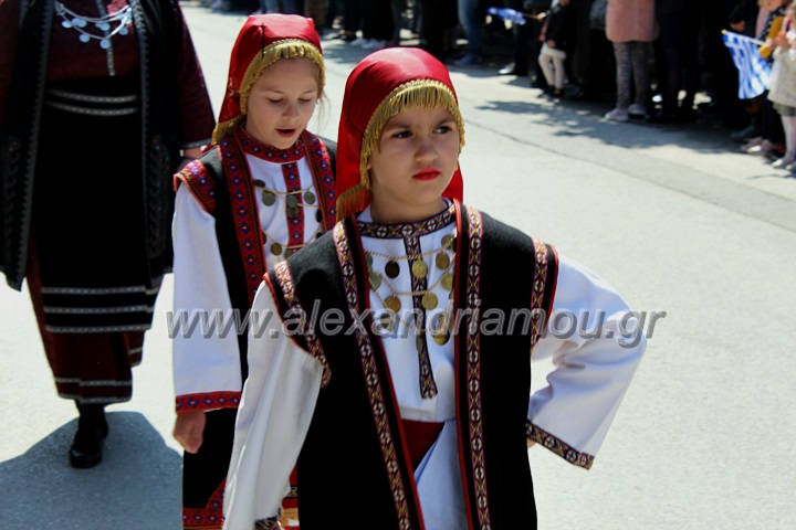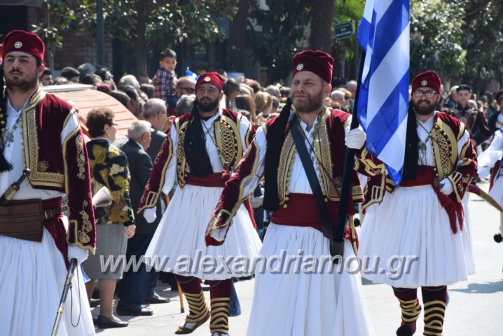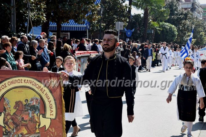Με ιδιαίτερη επισημότητα και λαμπρότητα πραγματοποιήθηκε η καθιερωμένη παρέλαση της επετείου της 25ης Μαρτίου στην Αλεξάνδρεια στις 12π.μ. επί της οδού Βετσοπούλου με τη συμμετοχή μαθητών και μαθητριών των σχολείων, πολιτιστικών συλλόγων, με τις σημαίες τους, καθώς και τμήματος Στρατού.