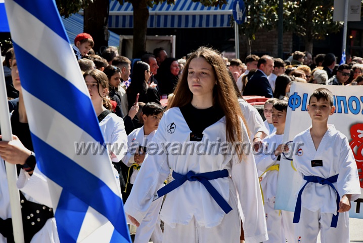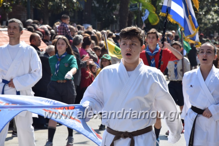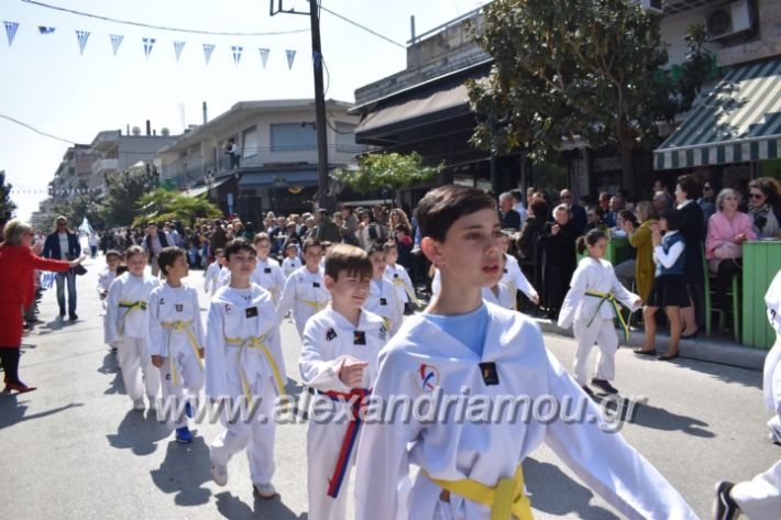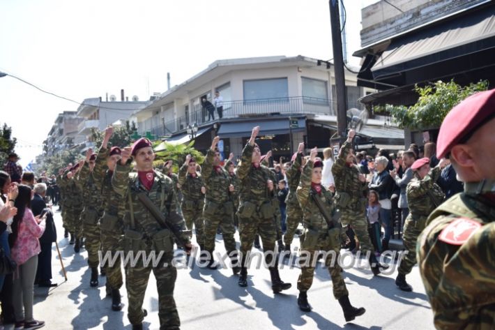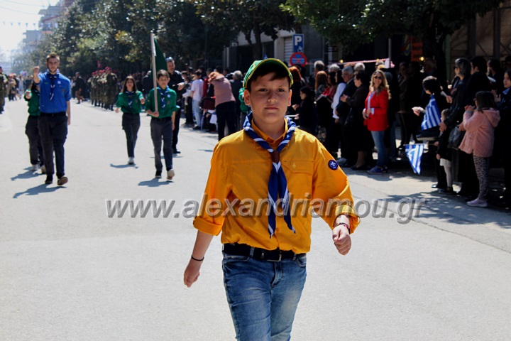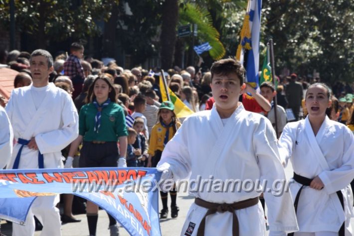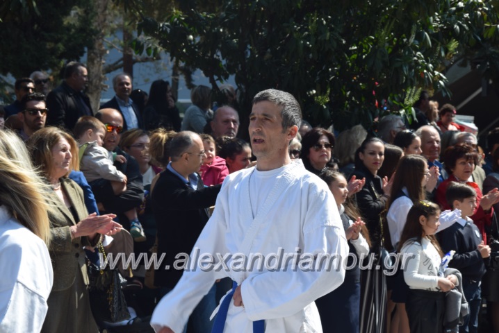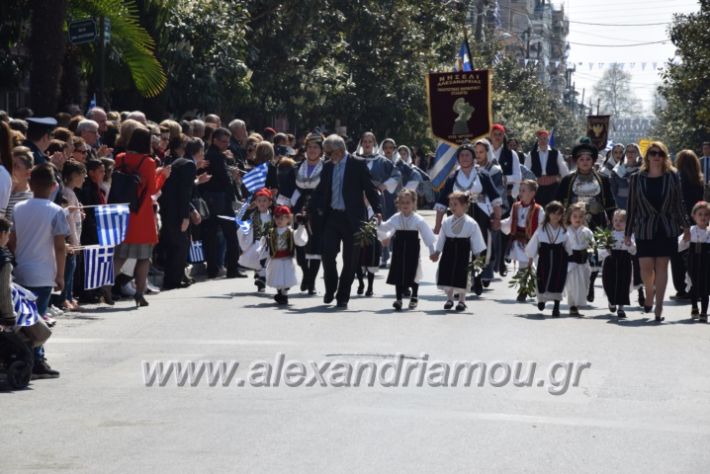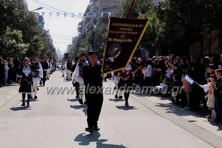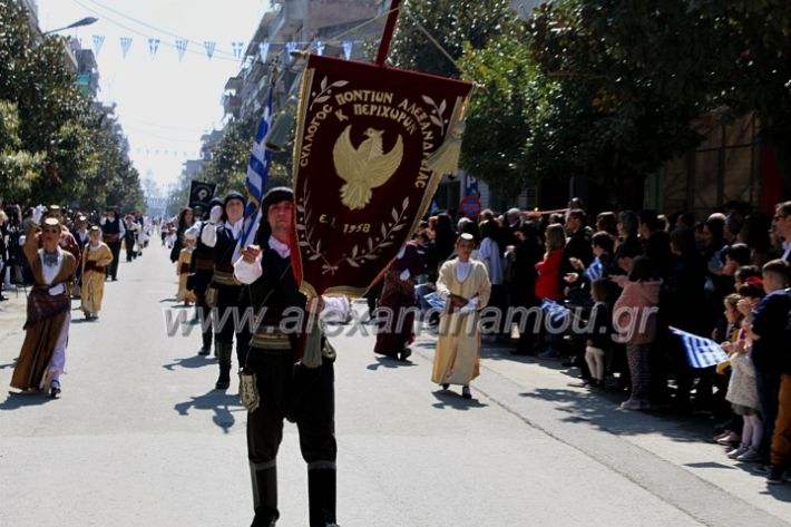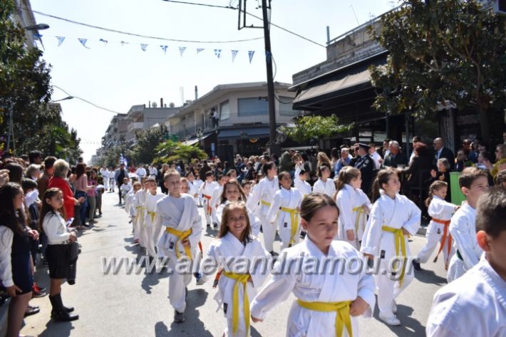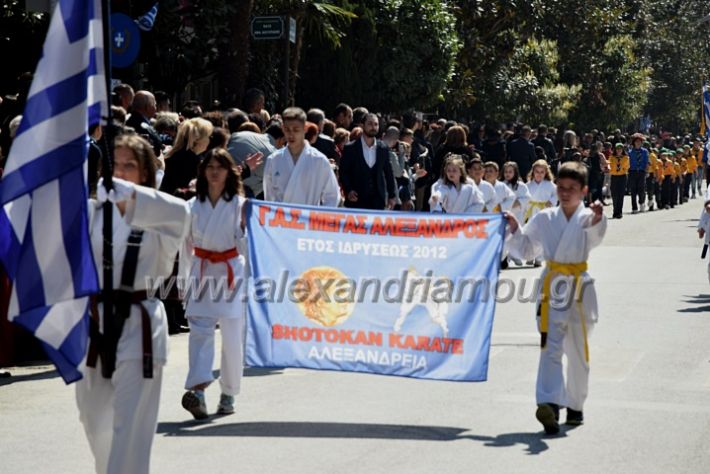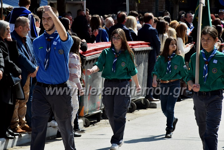 Με ιδιαίτερη επισημότητα και λαμπρότητα πραγματοποιήθηκε η καθιερωμένη παρέλαση της επετείου της 25ης Μαρτίου στην Αλεξάνδρεια στις 12π.μ. επί της οδού Βετσοπούλου με τη συμμετοχή μαθητών και μαθητριών των σχολείων, πολιτιστικών συλλόγων, με τις σημαίες τους, καθώς και τμήματος Στρατού.