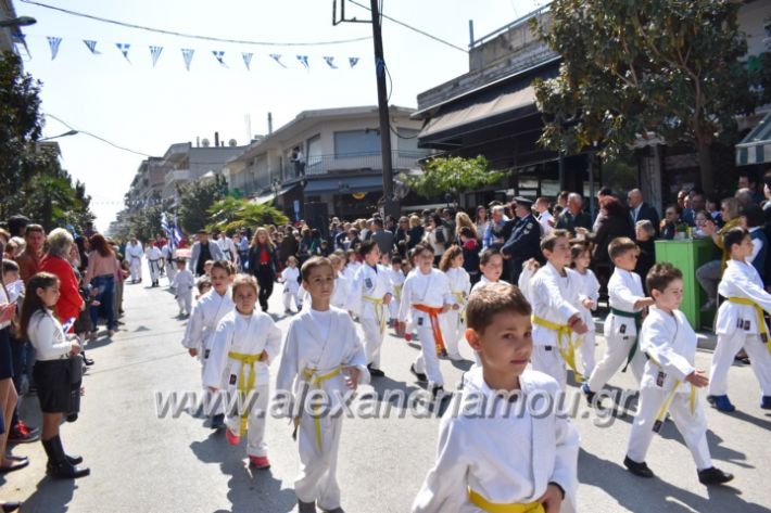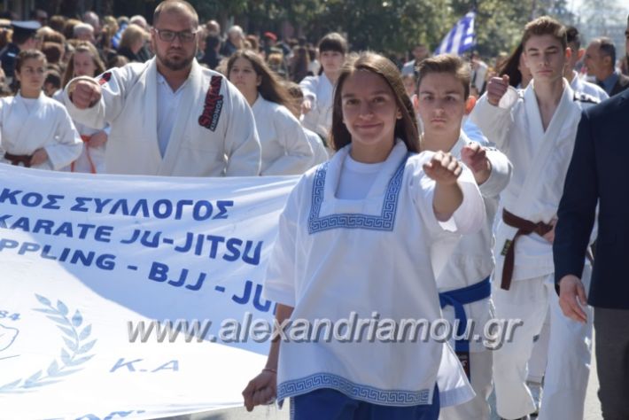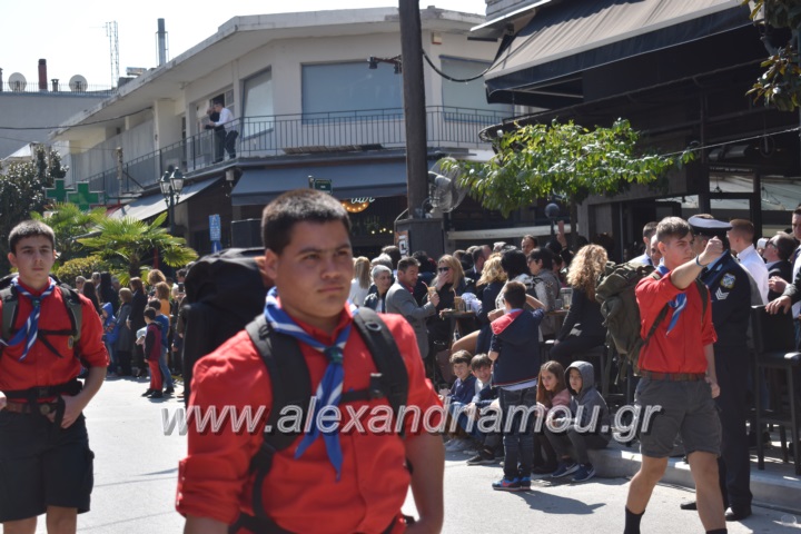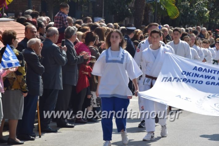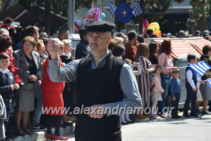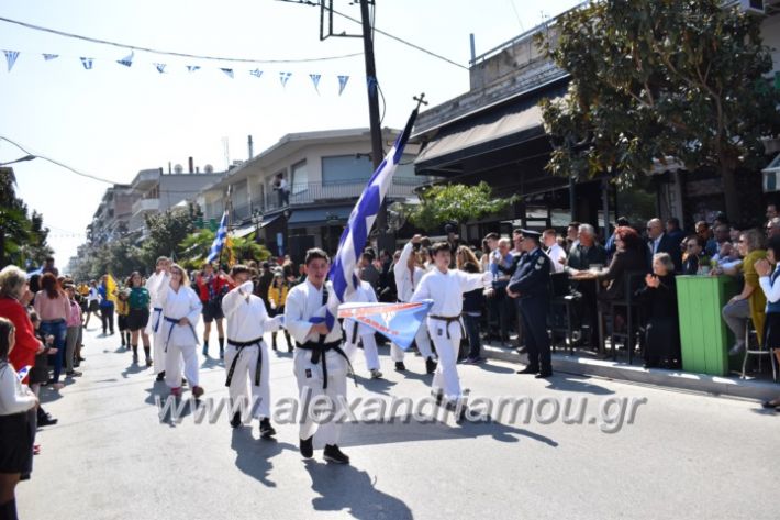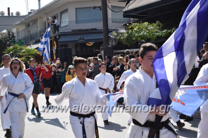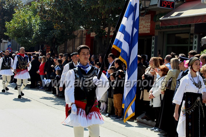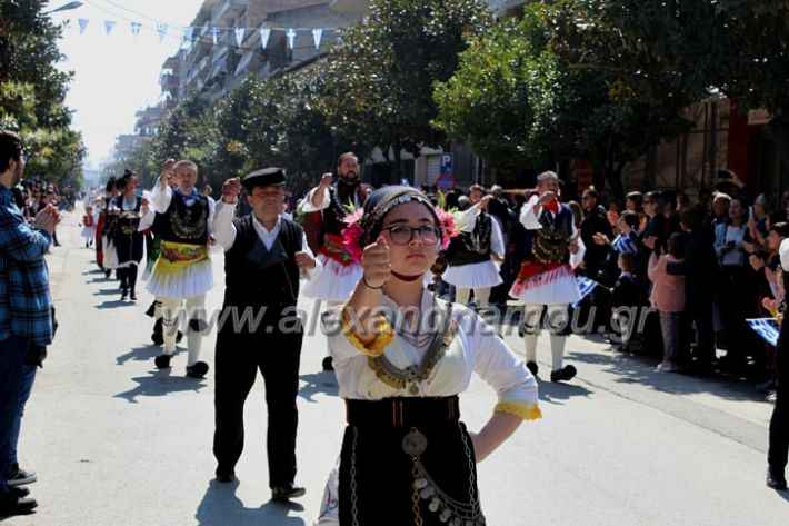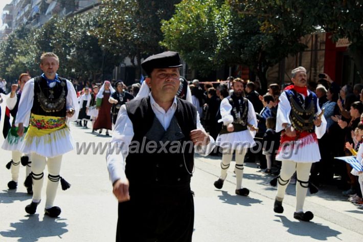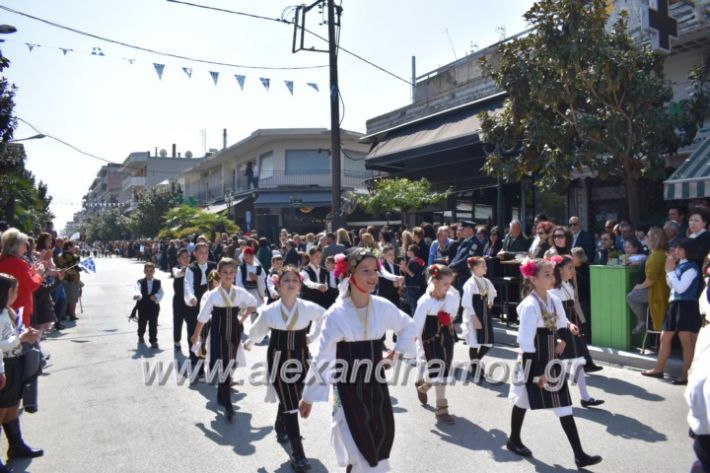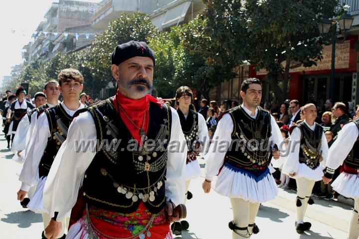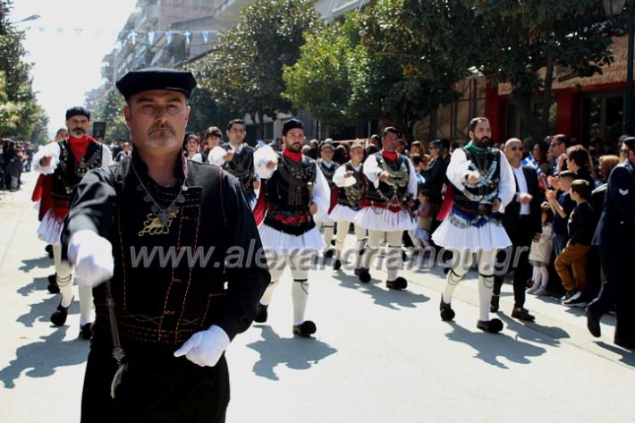 Συγκεκριμένα στην παρέλαση έλαβαν μέρος η Φιλαρμονική του Δήμου, το Ειδικό Σχολείο, τα Δημοτικά Σχολεία , Γυμνάσια , Λύκεια , ΕΠΑΛ – ΕΠΑΣ, Πολιτιστικοί Σύλλογοι της Δημοτικής Ενότητας Αλεξάνδρειας, Αθλητικοί Σύλλογοι , το Σώμα Ελλήνων Προσκόπων Αλεξάνδρειας και Διμοιρία στρατιωτών μερίμνη της Σχολής Αεροπορίας Στρατού.