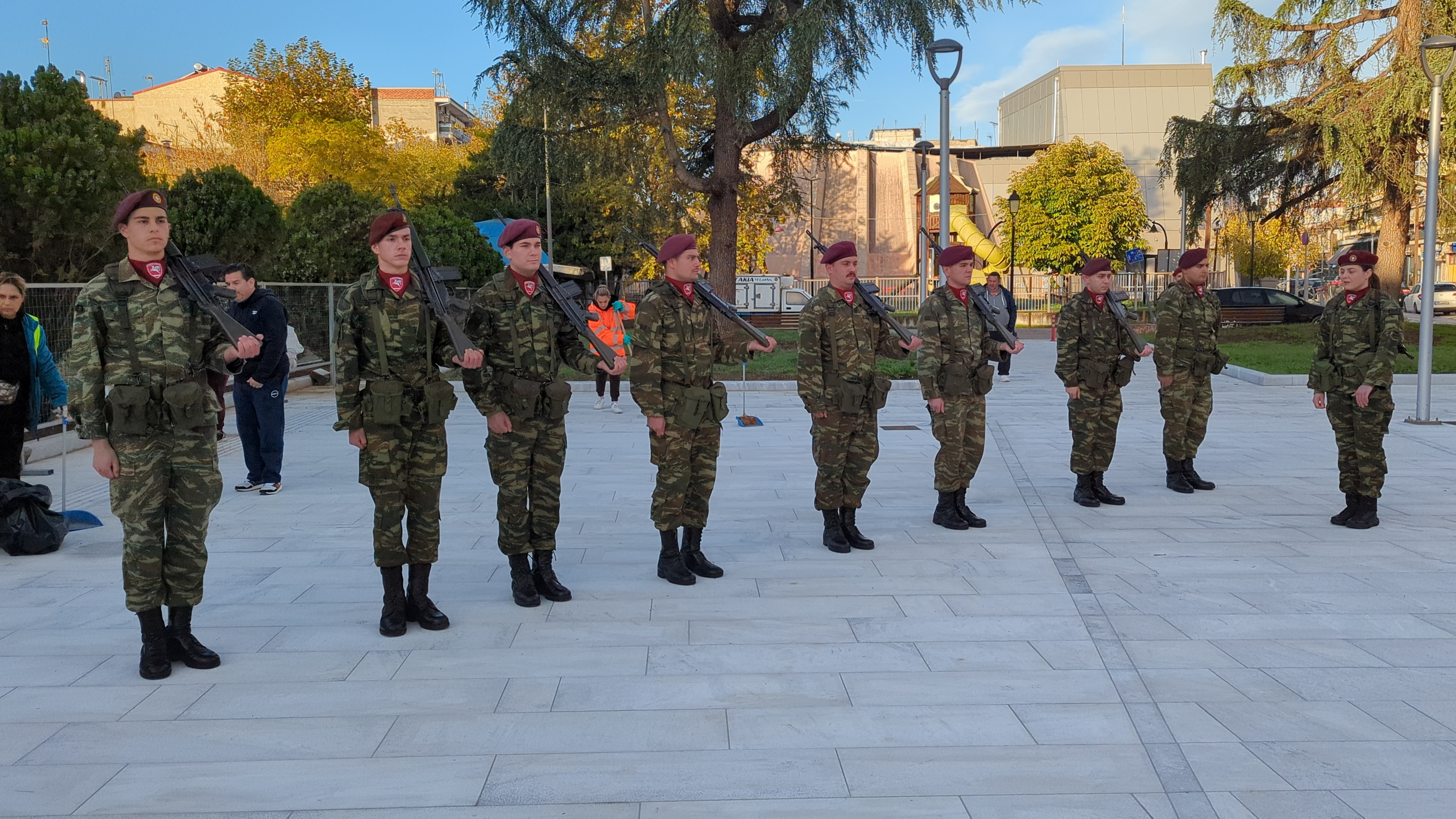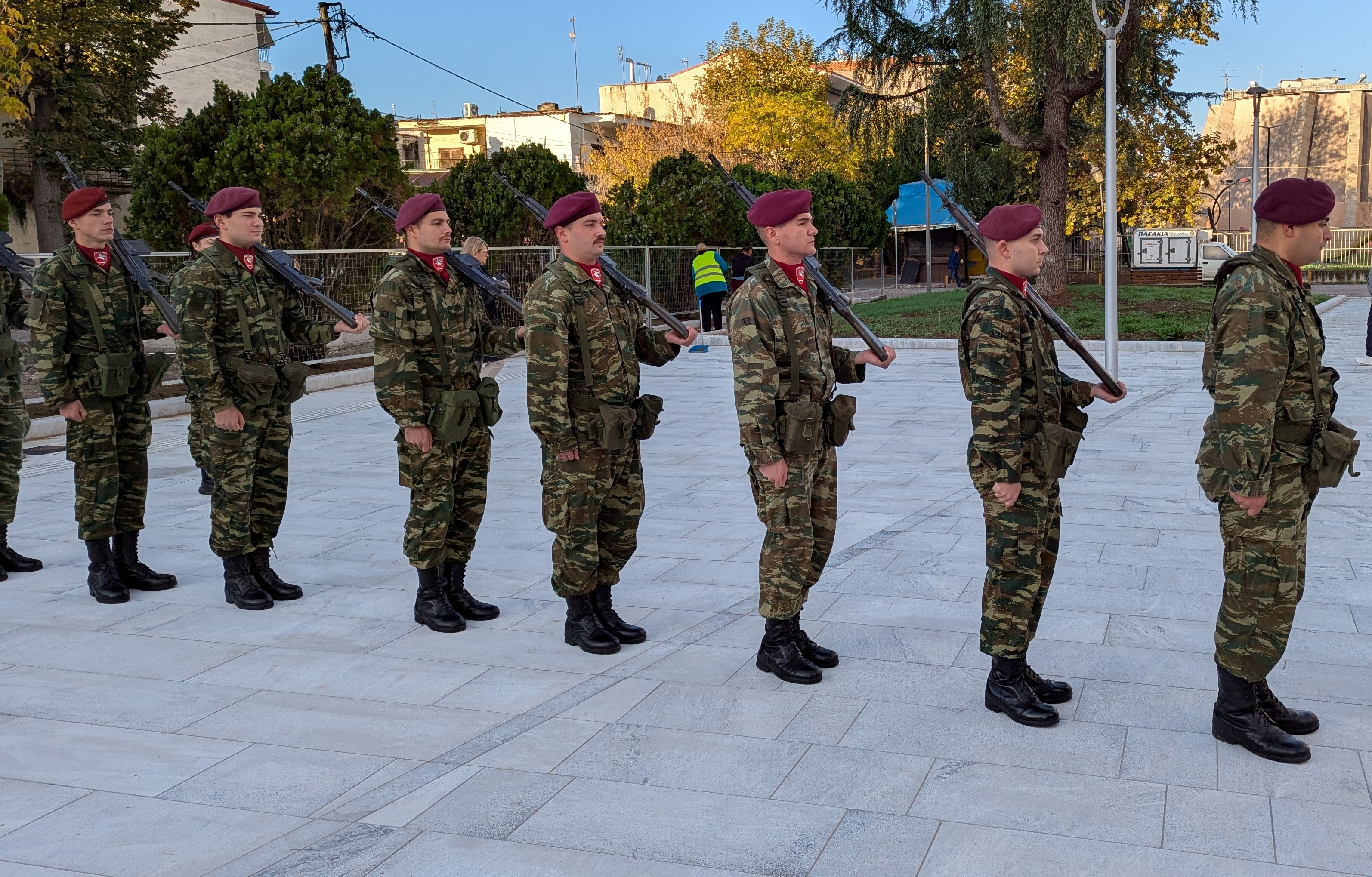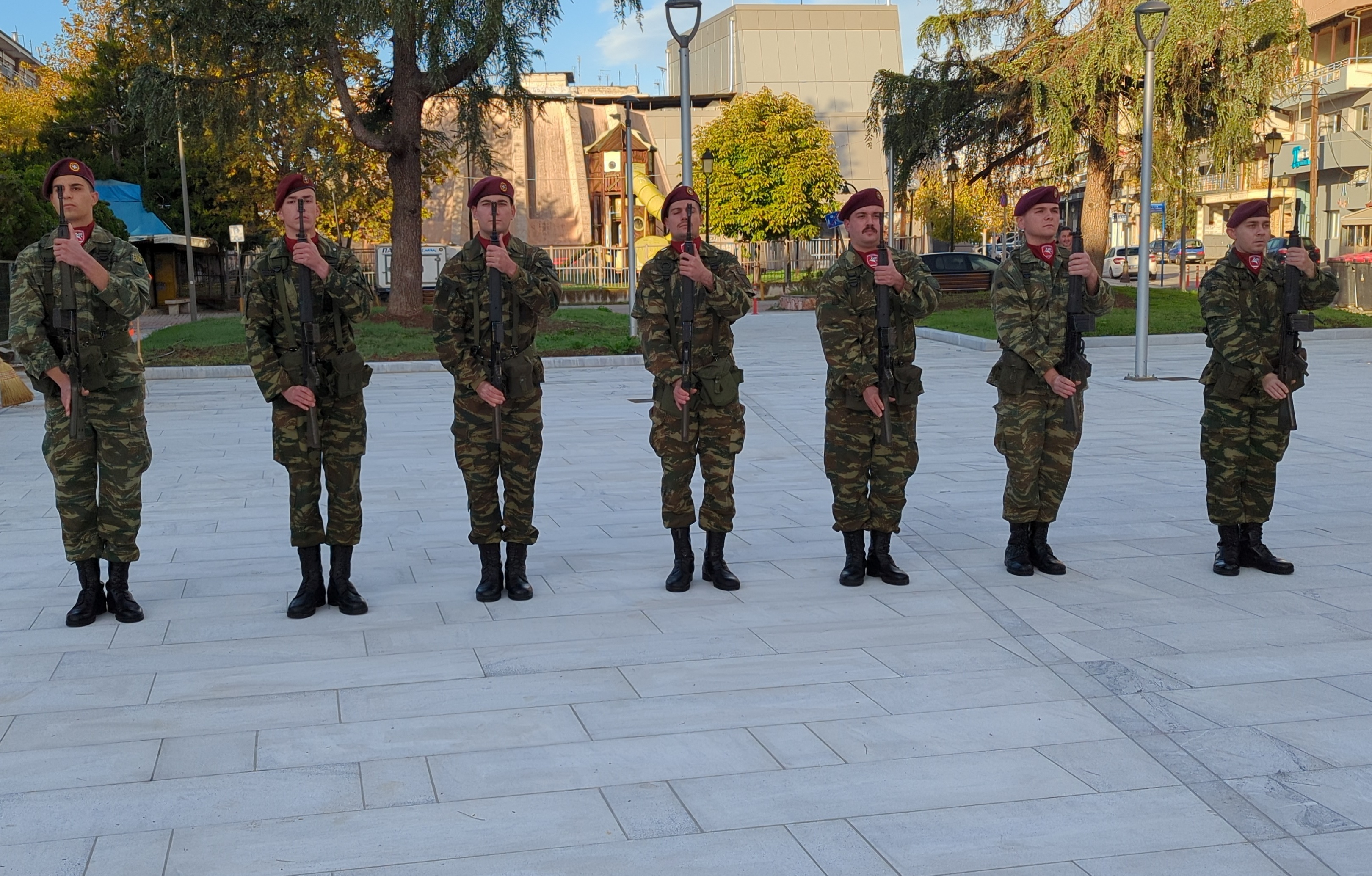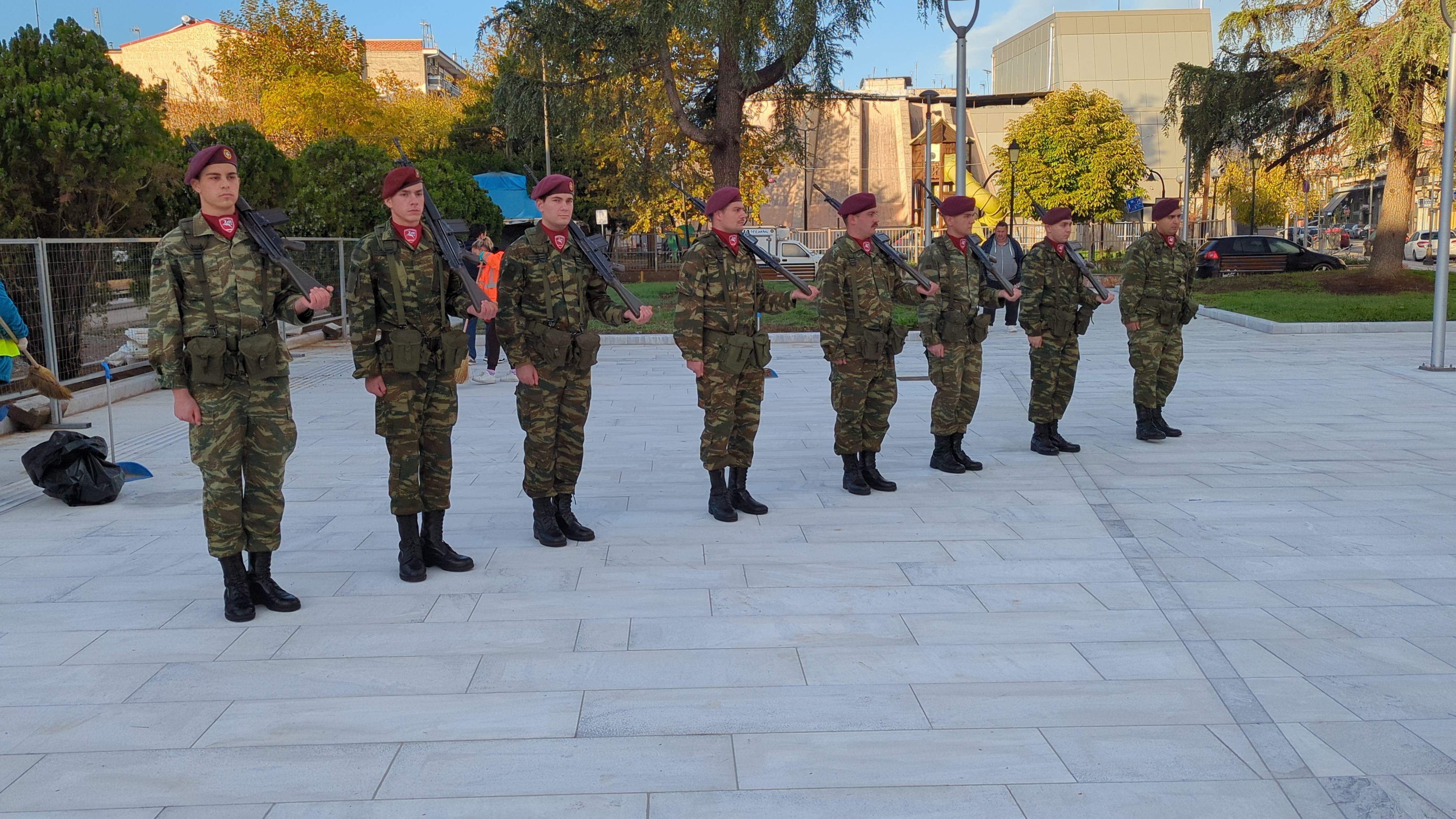 Η επίσημη τελετή έλαβε χώρα παρουσία ομάδας οπλιτών μέριμνας του Κέντρου Εκπαίδευσης Αξιωματικών Στρατού (Κ.Ε.Α.Σ.), στο χώρο του Ηρώου της πόλης, με σεβασμό και συγκίνηση για τη μνήμη των ηρώων που υπερασπίστηκαν την Πατρίδα.