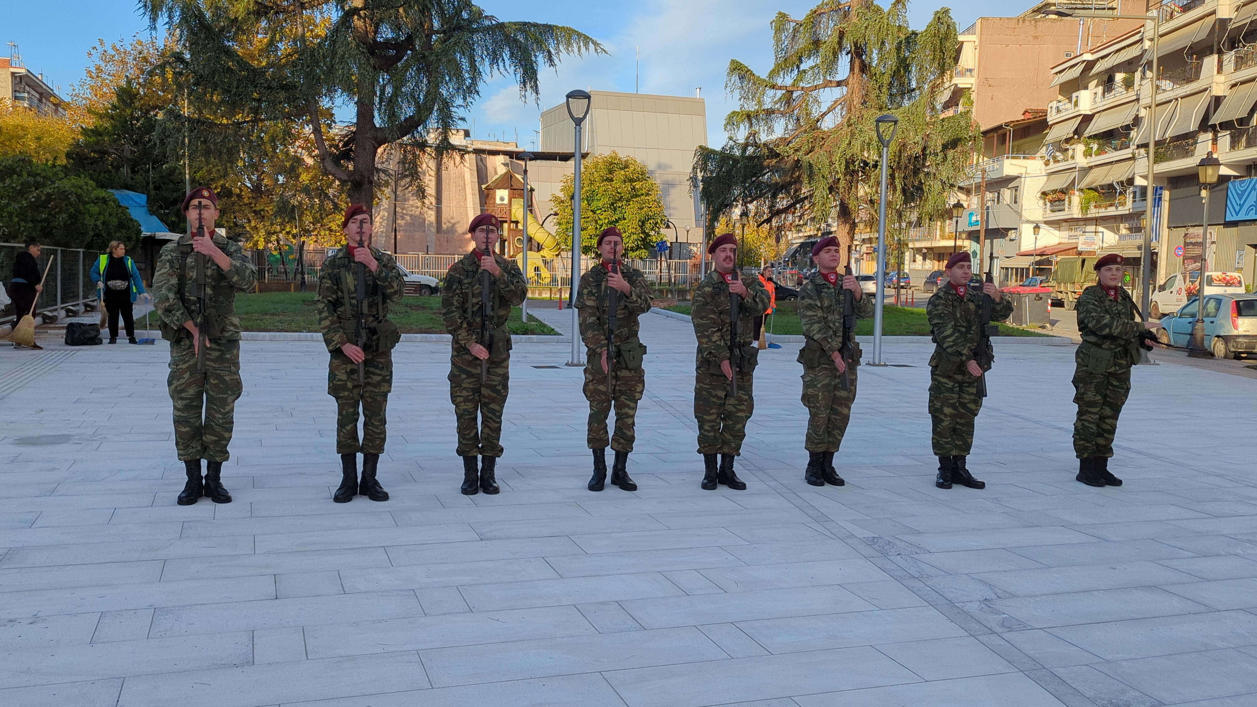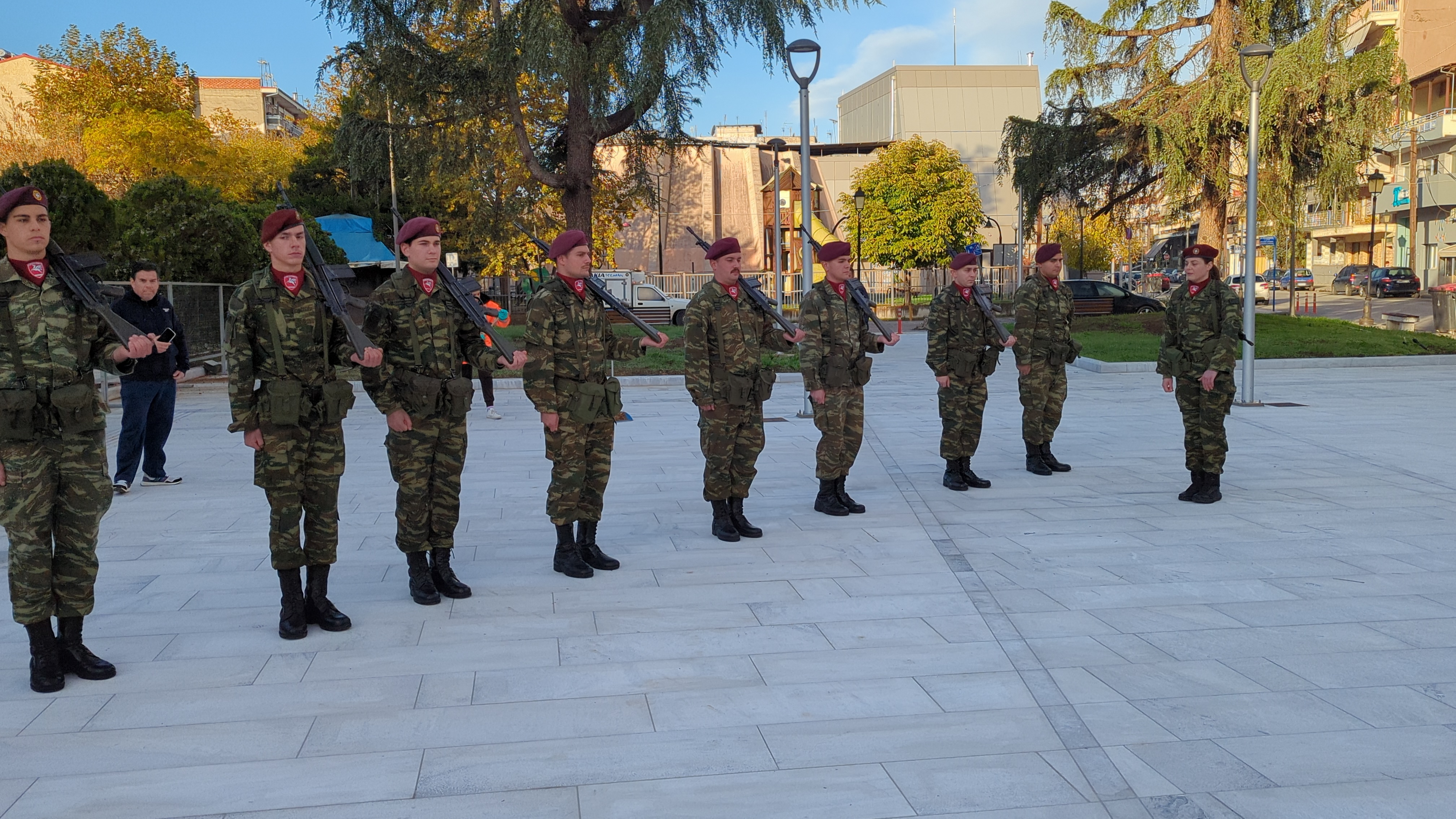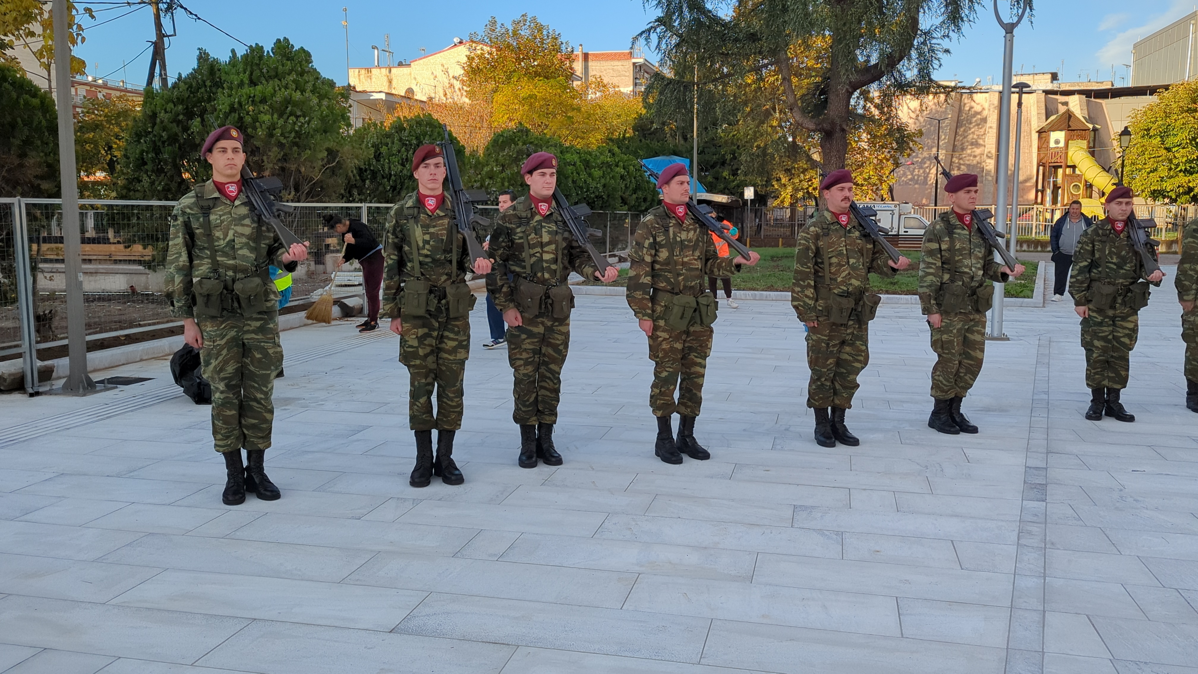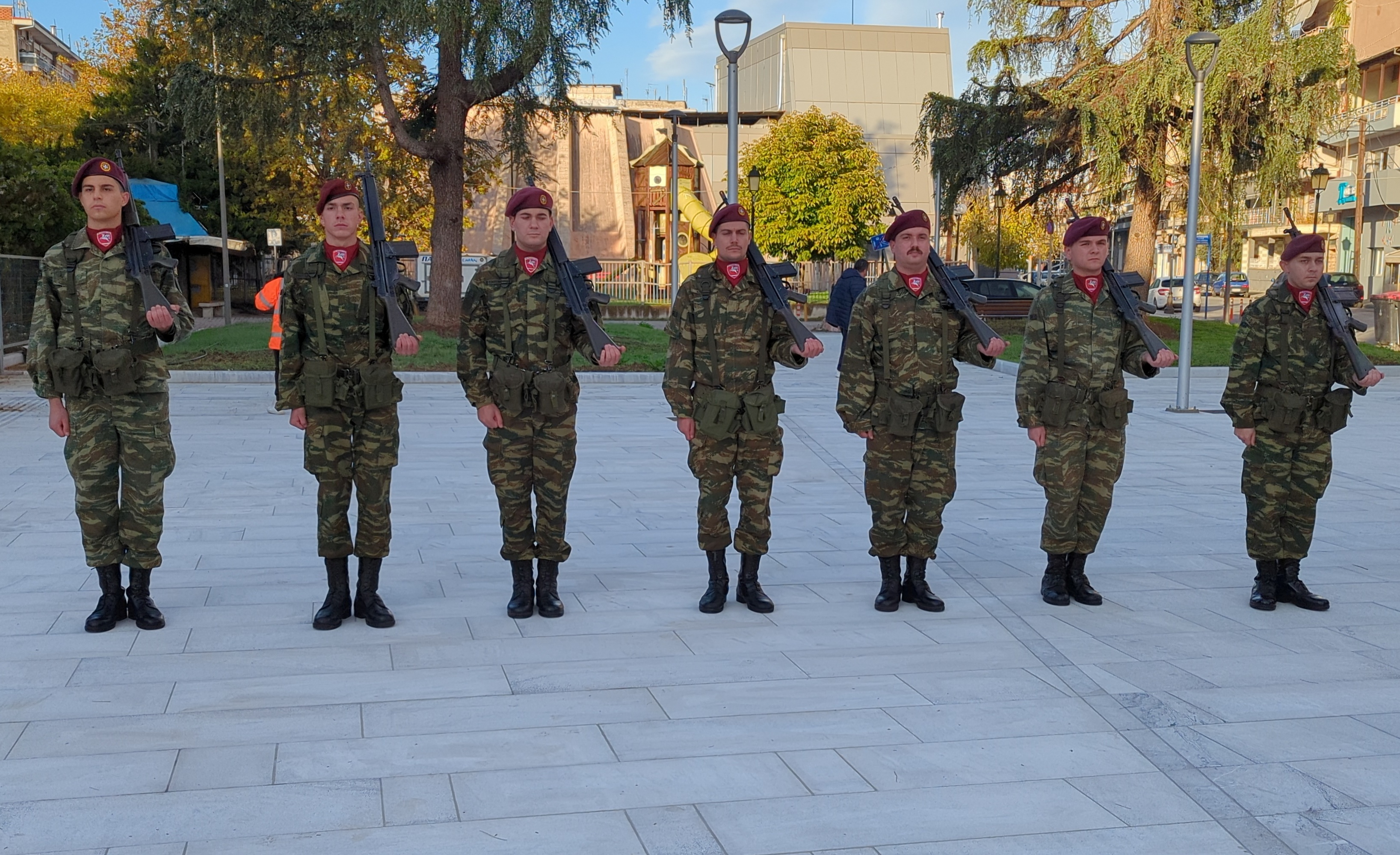 Η επίσημη τελετή έλαβε χώρα παρουσία ομάδας οπλιτών μέριμνας του Κέντρου Εκπαίδευσης Αξιωματικών Στρατού (Κ.Ε.Α.Σ.), στο χώρο του Ηρώου της πόλης, με σεβασμό και συγκίνηση για τη μνήμη των ηρώων που υπερασπίστηκαν την Πατρίδα.