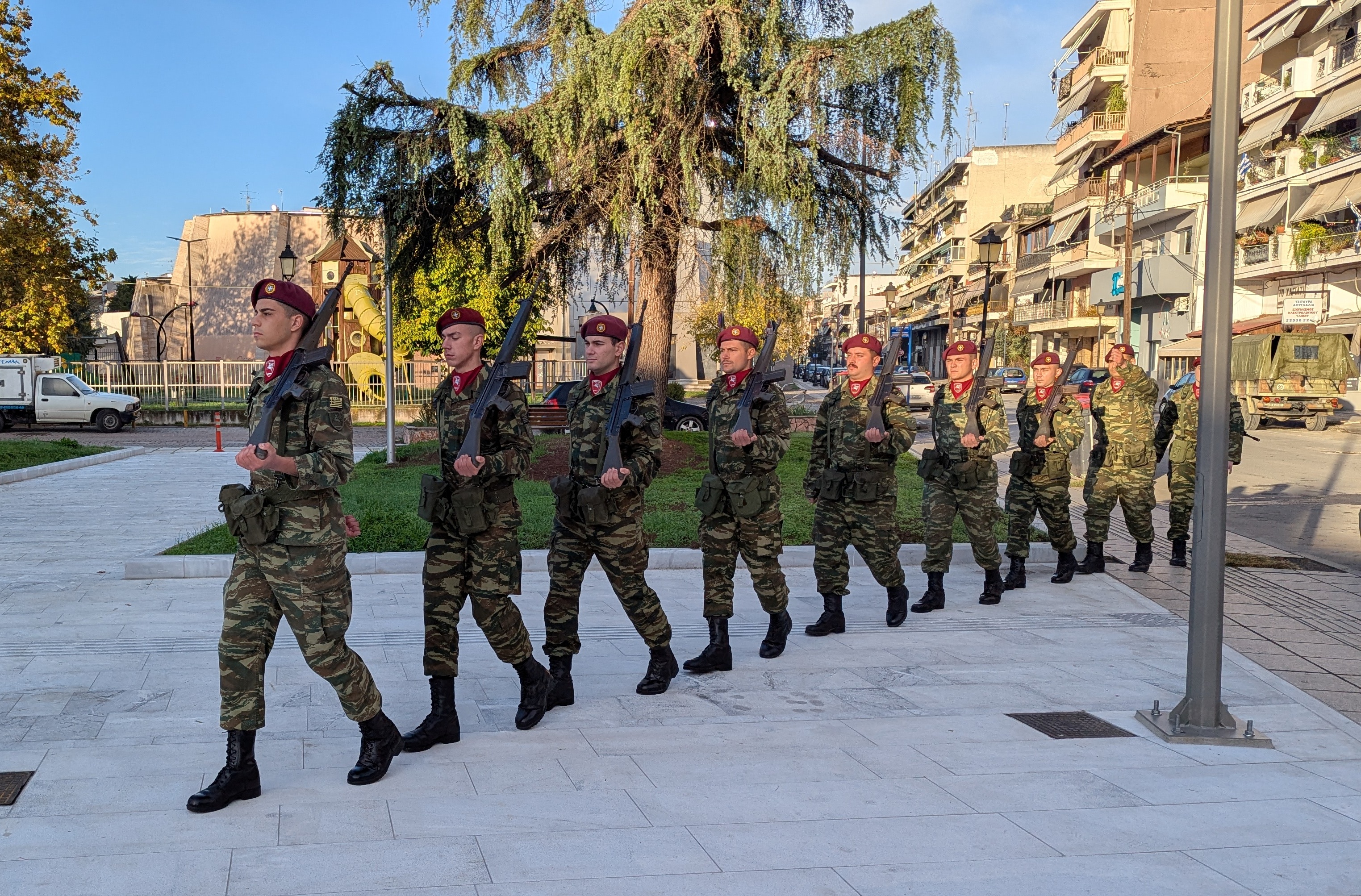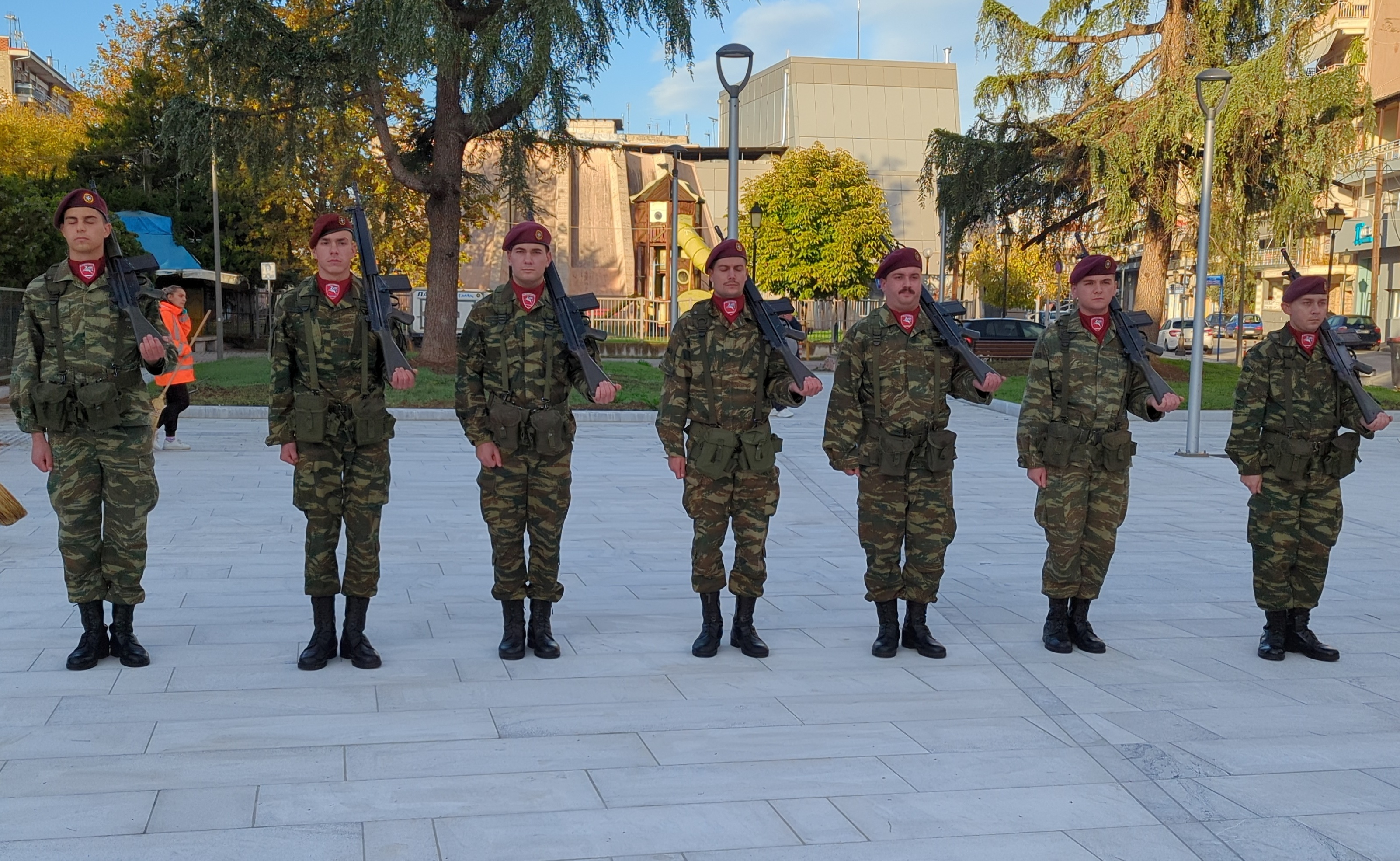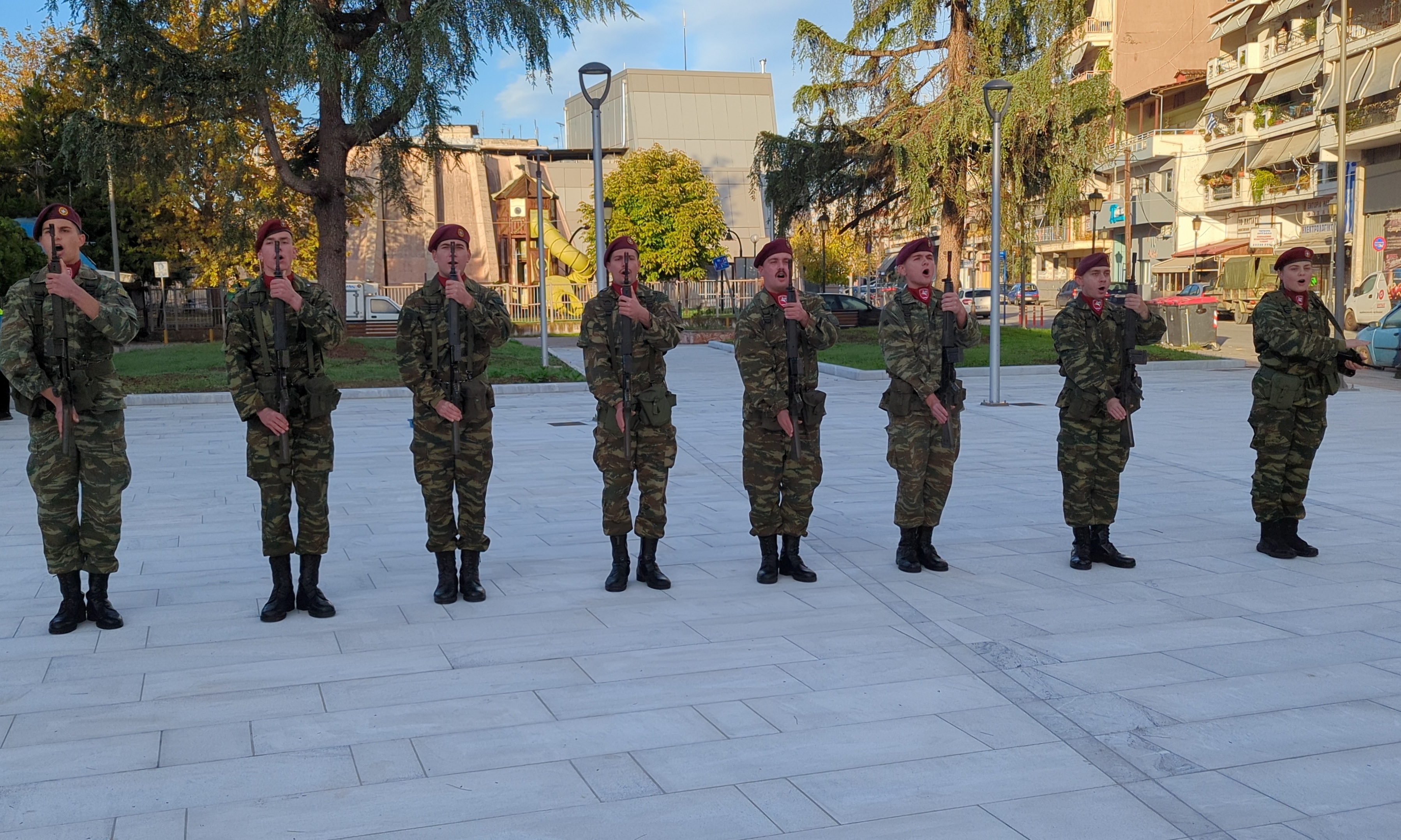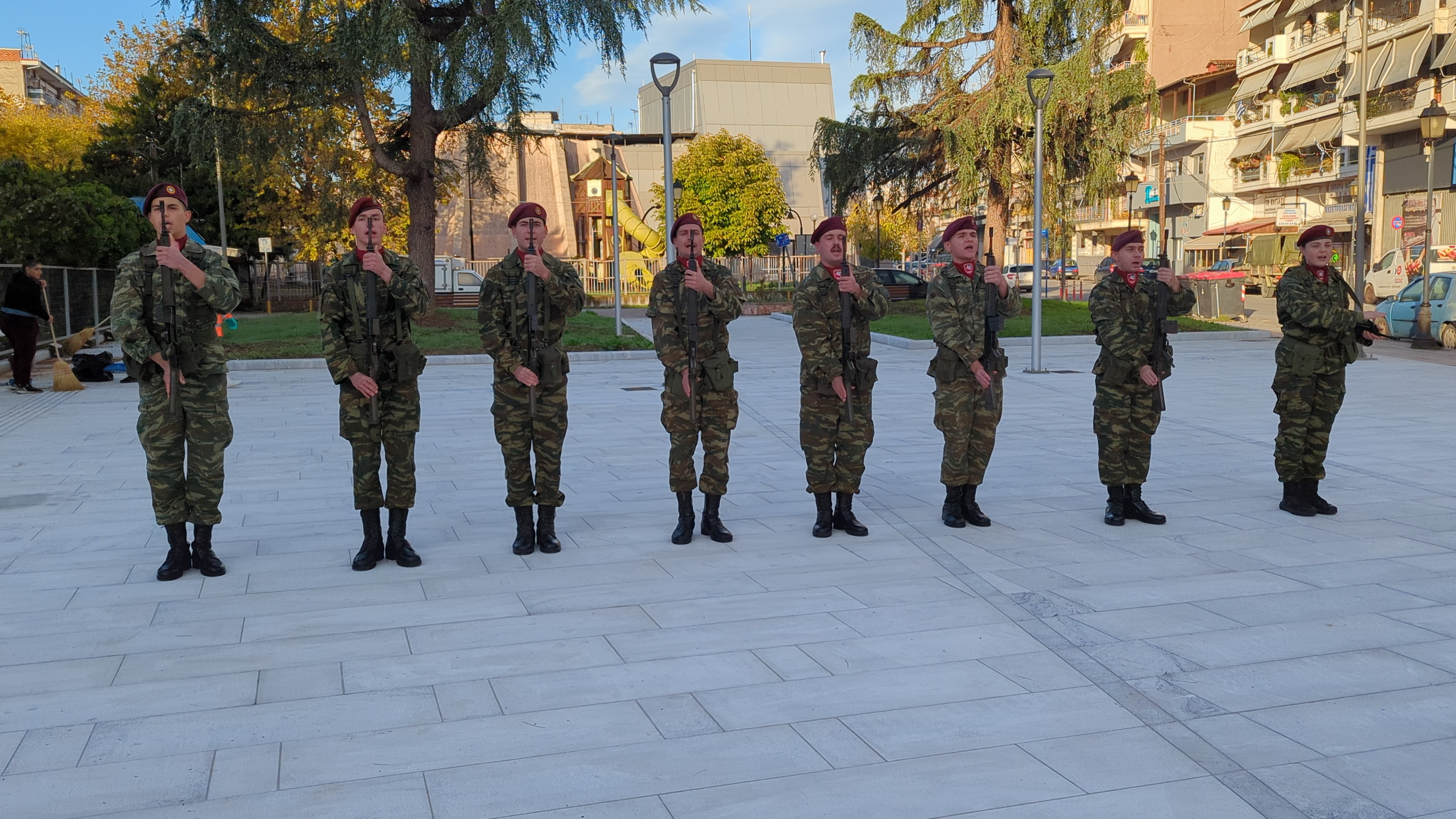 Η επίσημη τελετή έλαβε χώρα παρουσία ομάδας οπλιτών μέριμνας του Κέντρου Εκπαίδευσης Αξιωματικών Στρατού (Κ.Ε.Α.Σ.), στο χώρο του Ηρώου της πόλης, με σεβασμό και συγκίνηση για τη μνήμη των ηρώων που υπερασπίστηκαν την Πατρίδα.
